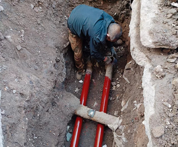11月25日晚8點(diǎn),凱德成首站壓力出現(xiàn)異常,急需盡快處理。檢修所王曉雨、喬波帶領(lǐng)人員經(jīng)過排查,在地溝DN80主管和DN32支管上發(fā)現(xiàn)兩處漏點(diǎn),搶修人員連夜進(jìn)行泄水、打抱卡應(yīng)急處理,僅用了3小時(shí)就圓滿完成搶修任務(wù),及時(shí)恢復(fù)了供熱。
