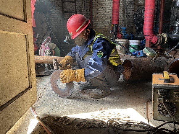 6月12日,筆者來到新華西分公司文化宮街供暖所體委熱力站檢修現(xiàn)場,檢修所帶班長張建民和檢維修人員頭戴安全帽,手持各種工具,正在緊張忙碌著,從儀表到螺栓,從管道到閥門,站里的每一臺設(shè)備,每臺設(shè)備的每一個部位,他們都要仔細地進行檢查,不放過任何一個細節(jié)。張建民說:“去年供暖期間站內(nèi)二次網(wǎng)DN150彎頭因腐蝕導(dǎo)致漏水,為了不影響用戶用熱,我們當時做了緊急處理,為了徹底解決問題,分公司將此段管網(wǎng)的改造列入今年的夏季檢維修計劃,今天我們就是來更換這段管網(wǎng)和那個彎頭的,由于該管網(wǎng)上面還敷設(shè)有3根管網(wǎng),地溝空間狹小,為了方便施工,只能在管網(wǎng)下面人工開挖出作業(yè)坑,檢修人員鉆進去蹲著或者趴著切割、焊接,再從側(cè)面更換管網(wǎng)和彎頭,預(yù)計兩天就能更換完畢?!?/span>